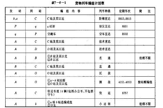 在这两部分计划中,对所有编组列车的车站规定了编组列车的种类、到达站及编组内容。