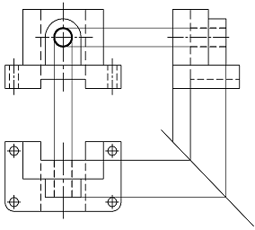(2)采用45°斜线和临时追踪点的方式;如确定图左视图的虚线的起点。