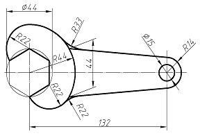 根据图形分析,图形绘制的难点在右侧的弧形槽部分,主要是R12圆弧与其他圆弧切点的位置在中心线上,R32圆弧上方切点也在中心线上,因此可以采用圆弧的绘制方式画出半圆及其连接弧。将极轴角设置为15°。