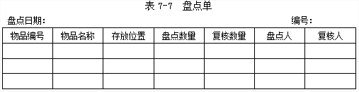 (3)设计打印盘点用表单,“盘点单”格式可参考表7-9;